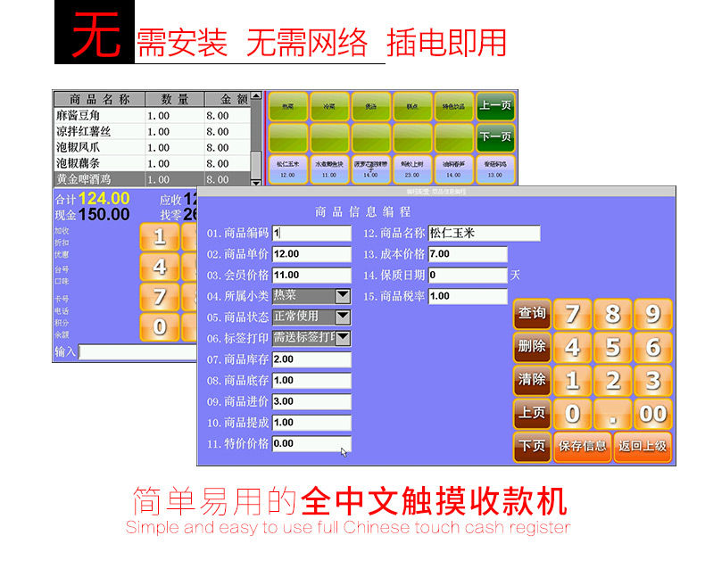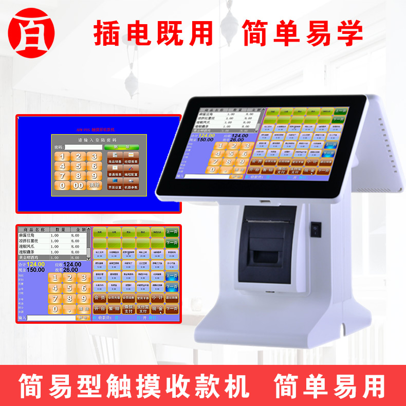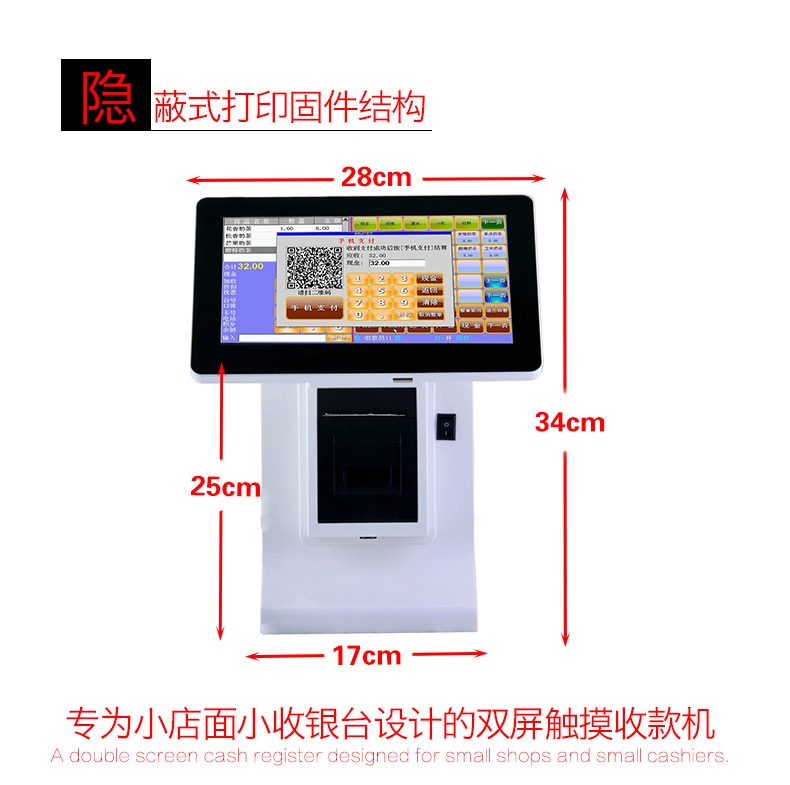 专为小店面小收银台设计的双屏触摸收款机