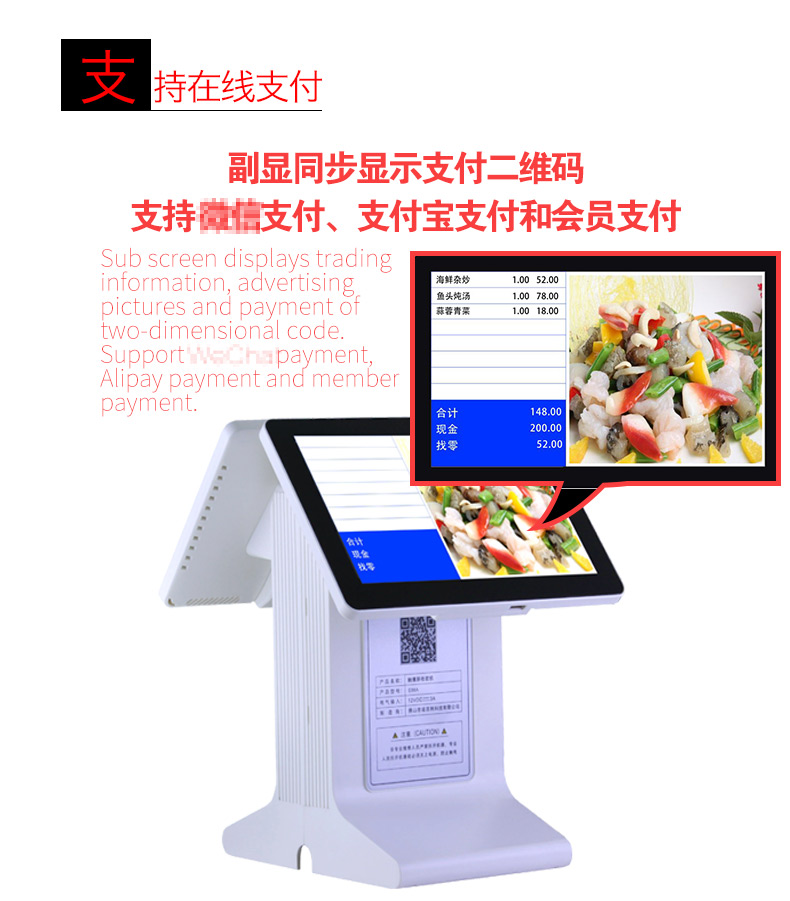 双显示屏触摸收款机