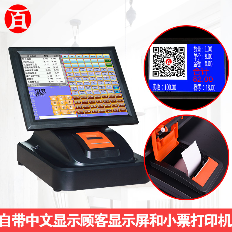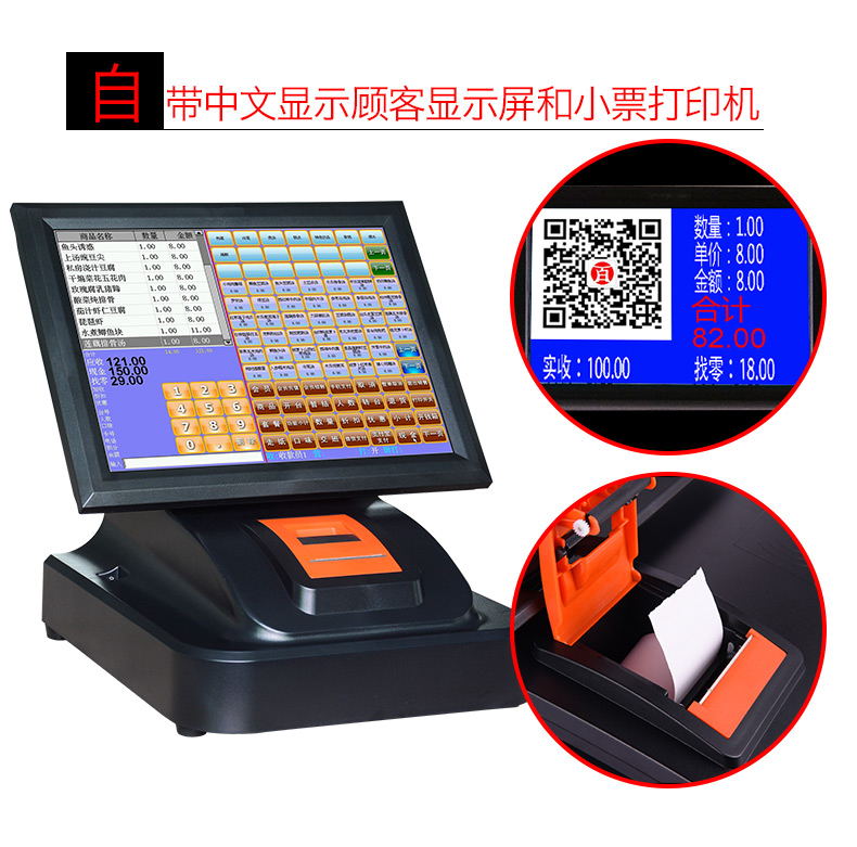 自带中文显示顾客显示屏和小票打印机